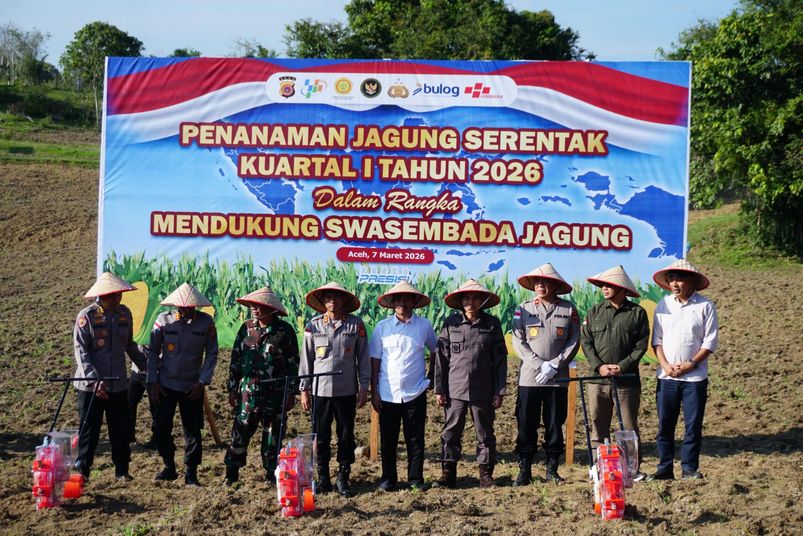 Acara dihadiri pejabat utama Polda Aceh, unsur Forkopimda Aceh Besar, sejumlah kepala OPD, Forkopimcam Seulimeum, serta warga yang ikut menanam jagung secara simbolis bersama aparat kepolisian.