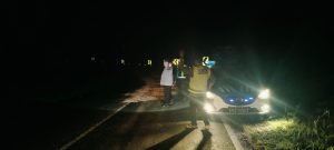 Personel Polsek Tadu Raya bersama anggota piket lalu lintas segera menuju lokasi untuk melakukan pengamanan dan mengatur arus kendaraan.