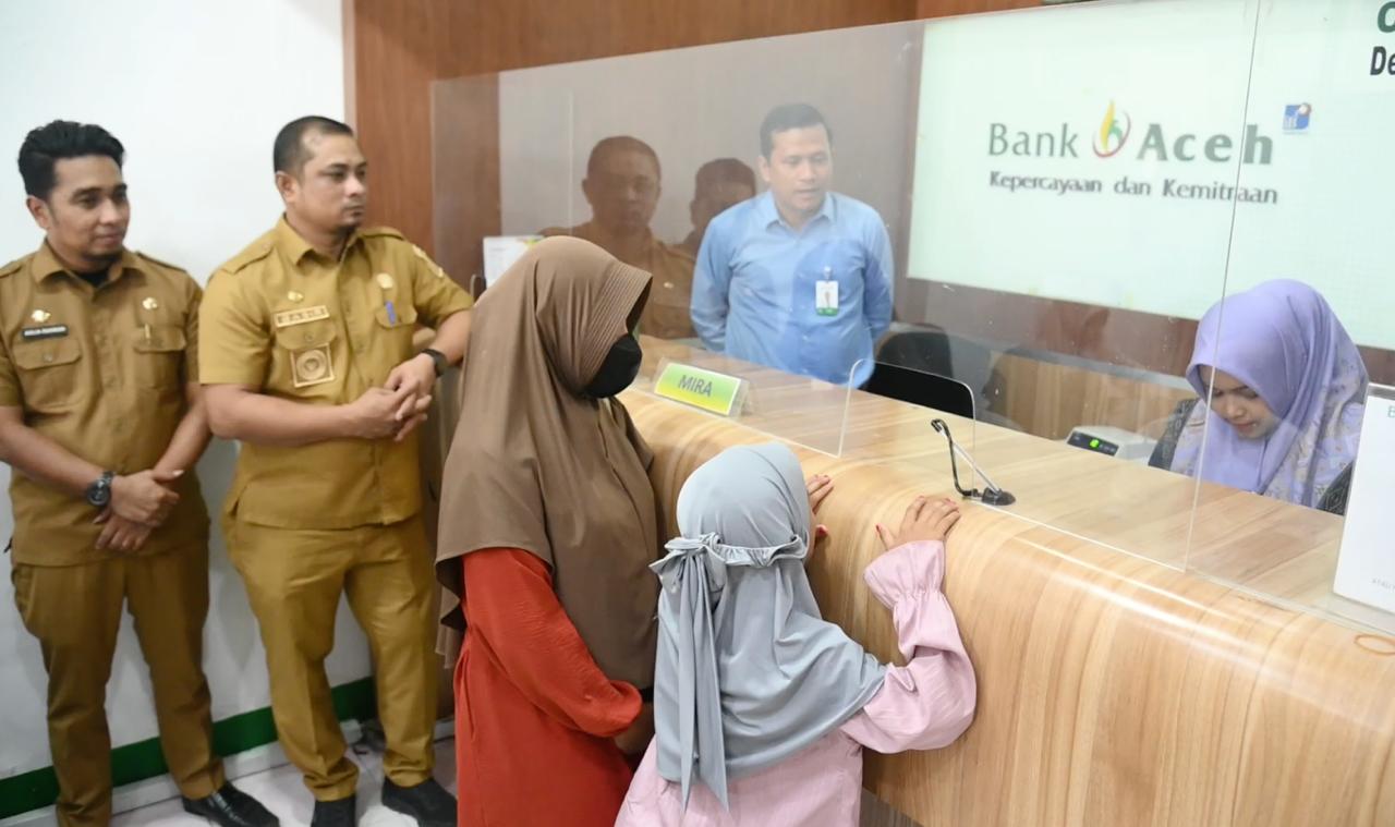 Penyerahan simbolis dilakukan Plt Kepala Dinas Sosial, Aulia Rahman, kepada lima penerima di Bank Aceh Syariah KCP Lampeuneurut, Kecamatan Darul Imarah, Selasa (17/03/2025).