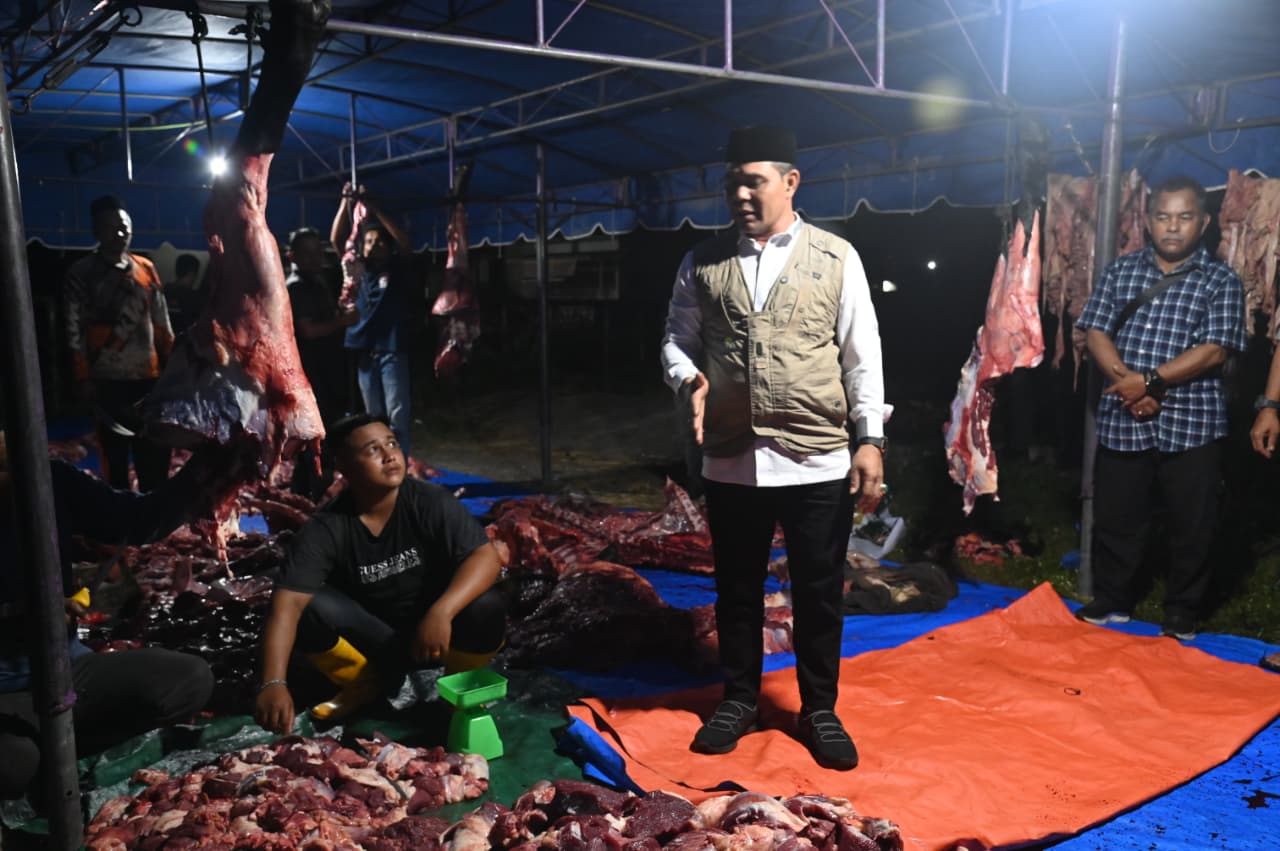 Hal itu disampaikan Syech Muharram saat meninjau pemotongan sapi di Rumah Pemotongan Hewan (RPH) Lambaro, Gampong Lubok Batee, Kecamatan Ingin Jaya, Kamis (19/03/2026) dini hari.