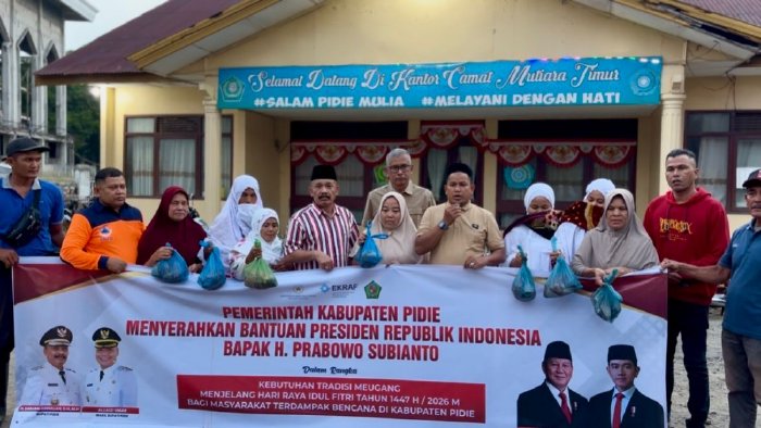 Pidie. RU – Bupati Pidie, Sarjani Abdullah, menyalurkan Bantuan Presiden (Banpres) berupa daging meugang Idul Fitri 1447 H dari Presiden RI, Prabowo Subianto, kepada warga terdampak banjir hidrometeorologi, Kamis (19/03/2026).
