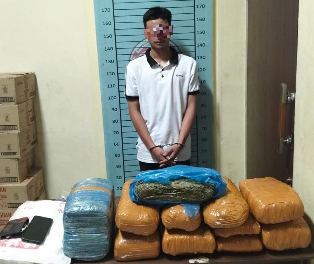 Dari penindakan itu, petugas menyita barang bukti berupa 11 paket ganja yang dibalut lakban cokelat dengan total berat mencapai 17,80 kilogram.