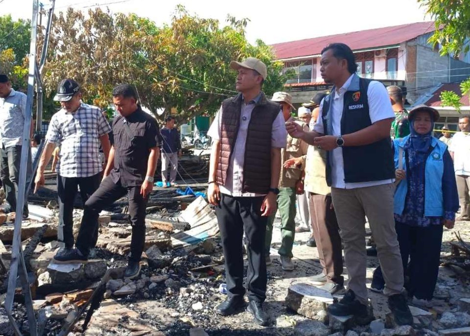 Aceh Selatan. RU – Bupati Aceh Selatan, Mirwan MS, meninjau lokasi kebakaran di Gampong Kotafajar, Kecamatan Kluet Utara, Minggu (29/03/2026), dan menyerahkan bantuan bagi korban 13 unit rumah toko (ruko) yang hangus terbakar sehari sebelumnya.