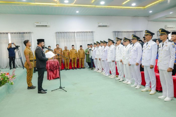 Aceh Timur. RU – Bupati Aceh Timur Iskandar Usman Al-Farlaky melantik 145 pejabat administrator dan pengawas, termasuk 14 camat, di Aula Serbaguna Pendopo Bupati, Senin (30/03/2026).