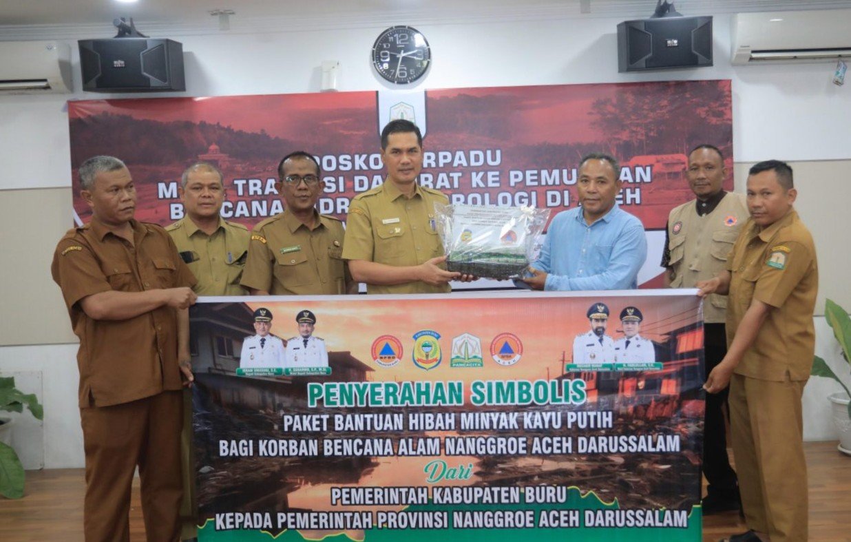 Banda Aceh. RU – Pemerintah Kabupaten Pulau Buru menunjukkan solidaritas kepada korban bencana hidrometeorologi di Aceh dengan mengirimkan 2.000 botol minyak kayu putih untuk mendukung pemulihan kesehatan warga terdampak.