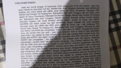 Kutacane. RU – Camat Deleng Pohisen, Saiful Rachman resmi dilaporkan ke Polisi oleh seorang warga…