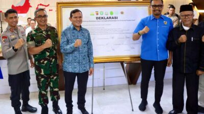 Wagub Fadhlullah, Pangdam IM, Mayor Jenderal TNI Joko Hadi Susilo, dan Kapolda Irjen Pol Marzuki Ali Bashyah bersama berbagai unsur menandatangani deklarasi Green Policing. [Foto Dok./rahasiaumum.com/Ist].